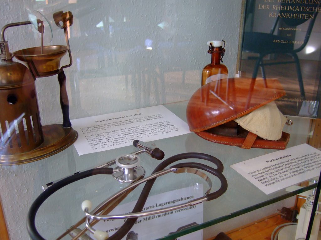 Für die Ausstellung wurden zahlreiche Exponate zusammengetragen, die einen Einblick in die Entwicklung der Gesundheitseinrichtungen und Apotheken geben. Dies sowohl im Hinblick auf die Einrichtungen und ihre Ausstattung als auch auf die Menschen, die in ihnen arbeiteten. Einen Schwerpunkt bildet an dieser Stelle das ehemalige Landambulatorium Gommern. Beginnend mit Kopien der Approbationsurkunden von der Kinderärztin Frau Dr. Helga Graf und dem Zahnarzt Dr. Ronald Graßhoff, der bis 2023 in Gommern praktizierte, über etliche medizinische Geräte und Hilfsmittel können die Ausstellungsbesucher auch in ehemaligen Brigadetagebüchern der damals Beschäftigten blättern. So geschehen während der Ausstellungseröffnung und wenn dann darin vom sozialistischen Wettbewerb für eine „Vorbildliche Gesundheitseinrichtung“ die Rede ist, wurden alte Erinnerungen mit offenkundig sehr gemischten Gefühlen geweckt.