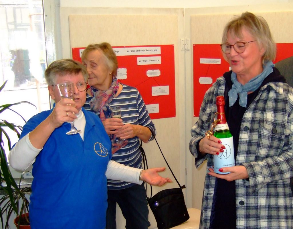 Im Rahmen der Ausstellungseröffnung „Gesundheitswesen und Apotheken in Gommern“ am 2. November 2025 konnte der Heimatverein in seinen Ausstellungsräumen den 15.000. Gast begrüßen. Kerstin Natho aus Gommern wurde von der Vereinsvorsitzenden Karin Gust mit einer Flasche heimischen Sekt beglückwünscht.