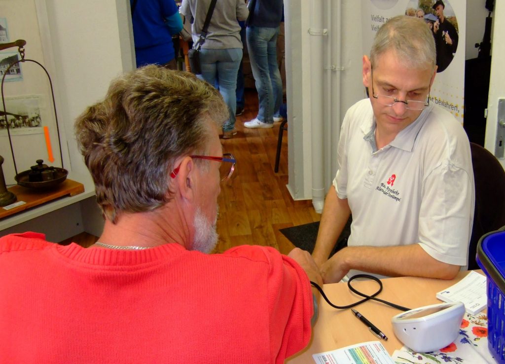 Die Rats-Apotheke Gommern war durch Herrn Alexander Strümpel vertreten, der anbot, vor Ort in den Räumen des Heimatvereins eine Blutdruckmessung vorzunehmen und Einblicke in das Leistungsspektrum einer modernen Apotheke gab. Diese Einladung nahmen zahlreiche Gäste an. Genauso wie das das Kuchenbuffet, ergänzt durch eine Tasse Kaffee, ein Glas Sekt oder Saft. Die Ausstellung kann bis zum Frühjahr jeweils am ersten Sonntag des Monats (demnächst parallel zum Weihnachtsmarkt am 6. und 7. Dezember 2025) angesehen werden. Auf Wunsch werden auch Führungen für Schulklassen, Hortgruppen und Erwachsene, z. B. im Zusammenhang mit Terminen für Klassentreffen oder Weihnachtsfeiern angeboten. Für Terminabsprachen steht die Vereinsvorsitzende Karin Gust als Ansprechpartnerin zur Verfügung (Telefon: 039200 50458 E-Mail: heimatverein.gommern@online.de)