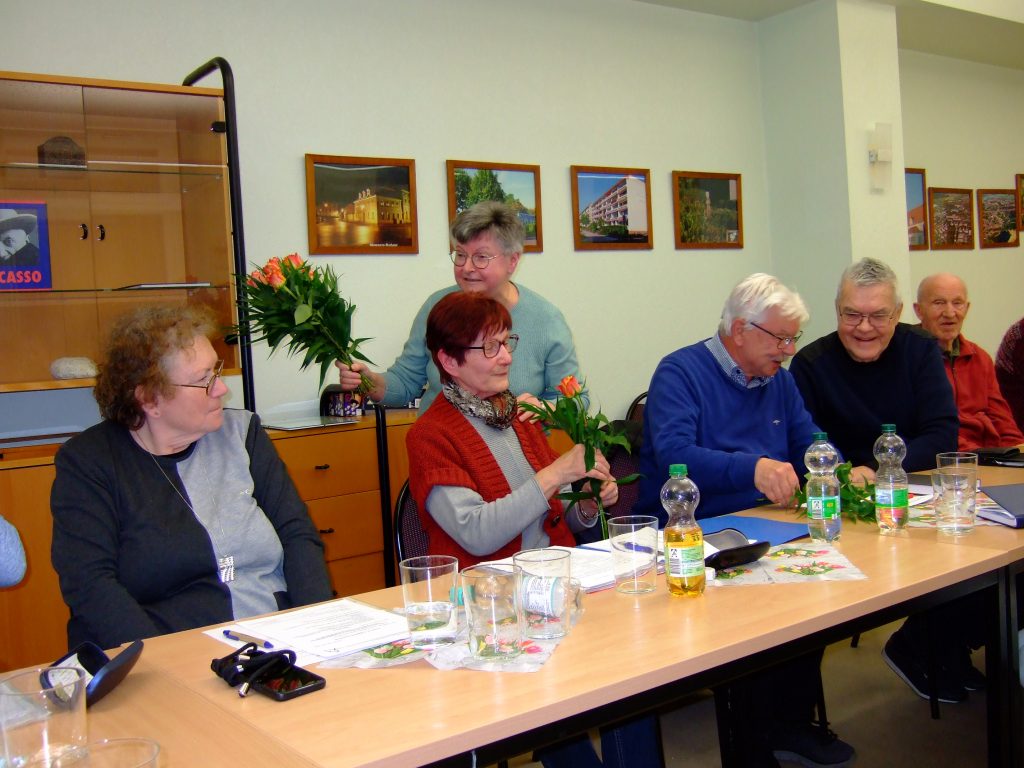 Die Mitgliederversammlung beschloss einstimmig, dem langjährigen Vereinsmitglied Renate Arndt die Ehrenmitgliedschaft zu verleihen. Die Laudatio hielt Birgit Reppin. Sie betonte, dass Frau Arndt zu den Gründungsmitgliedern zählt und wesentlichen Anteil an der stetigen Entwicklung des Vereins habe. Sowohl bei Veranstaltungen, z. B. dem Hoffest, bei dem sie Jahr für Jahr und immer verlässlich die kulinarische Versorgung der Gäste verantwortet, aber auch bei den Vereinsfinanzen redet sie ein gewichtiges Wörtchen mit. So steht sie der Revisionskommission vor und unterstützt mit Hinweisen die transparente Buchführung.